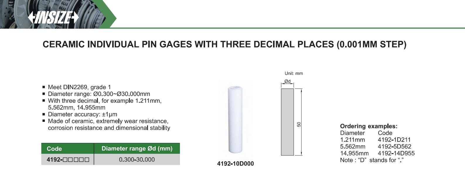 Ceramic Individual Pin Gages With Three Decimal Places (0.001Mm Step)
