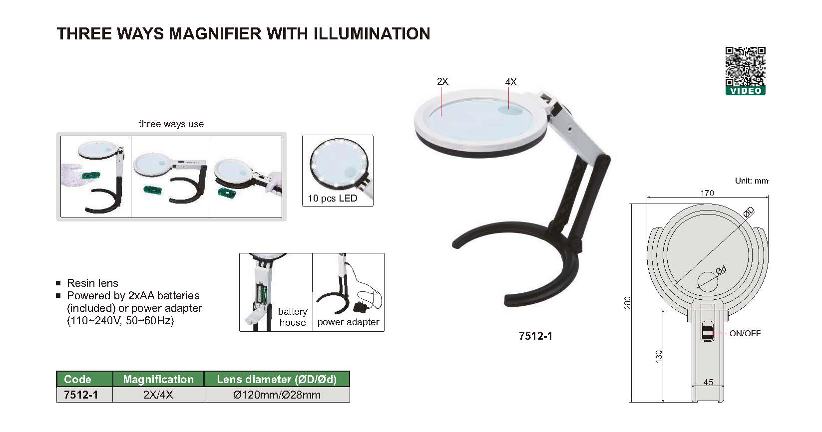 Three Ways Magnifier With Illumination