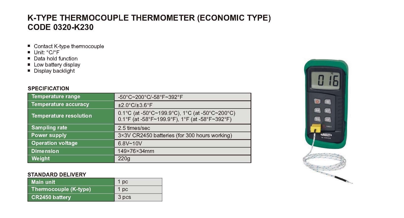 K-Type Thermocouple Thermometer (Economic Type)