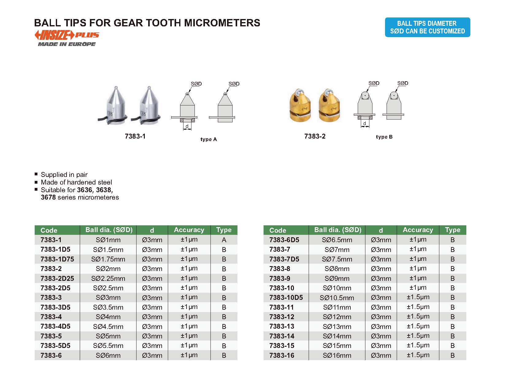 Ball Tips For Gear Tooth Micrometer